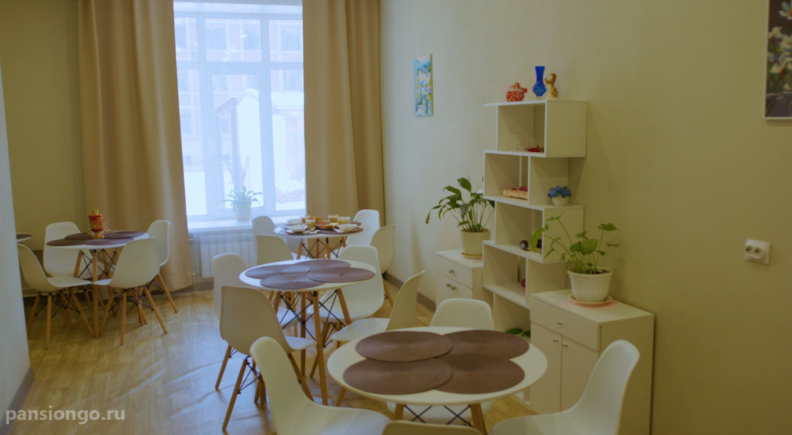 В уютной общей гостиной жильцы могут общаться, играть в настольные игры и проводить время в приятной компании. «МИРРА» создает атмосферу заботы, где пожилые люди чувствуют себя комфортно и безопасно.
